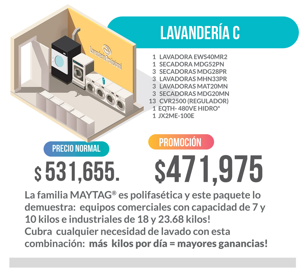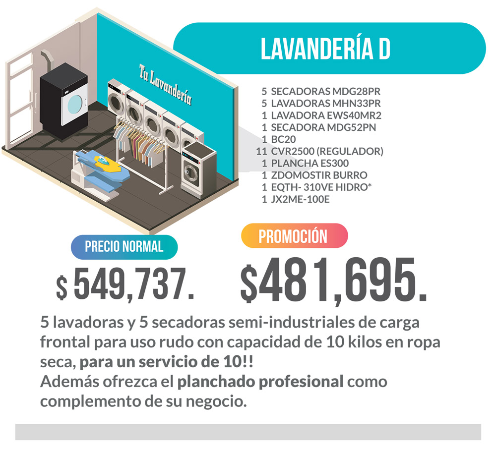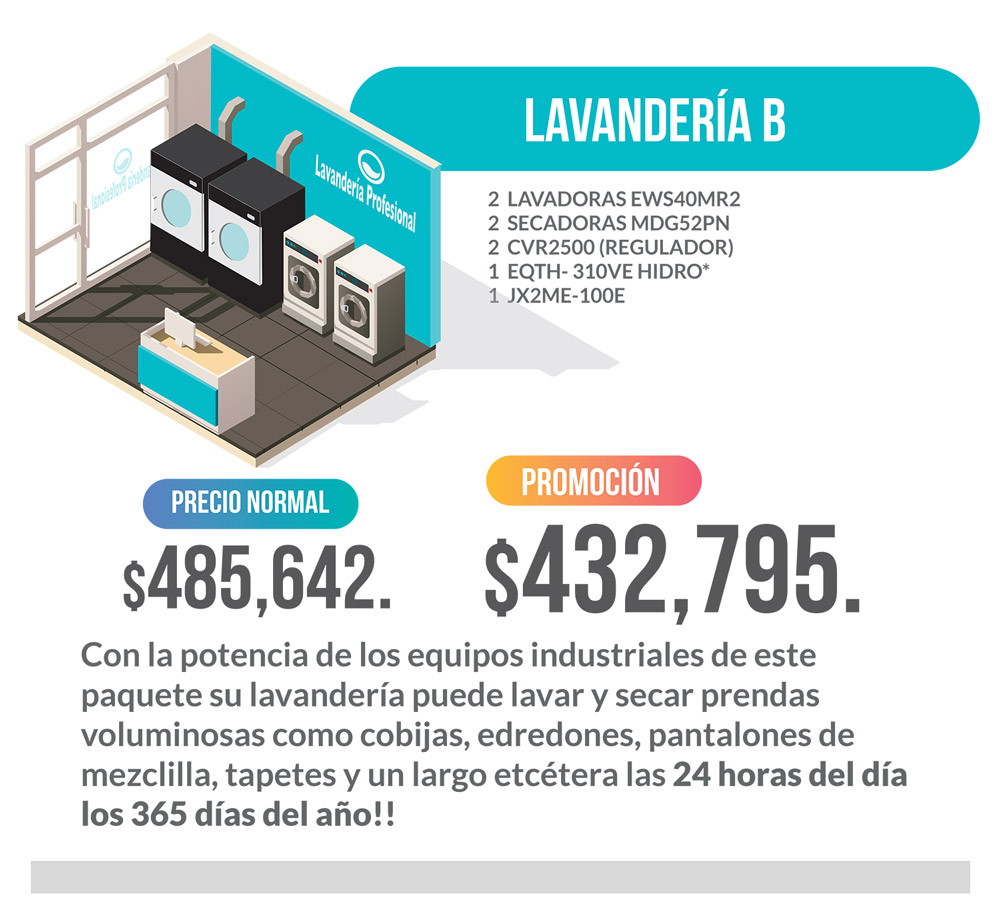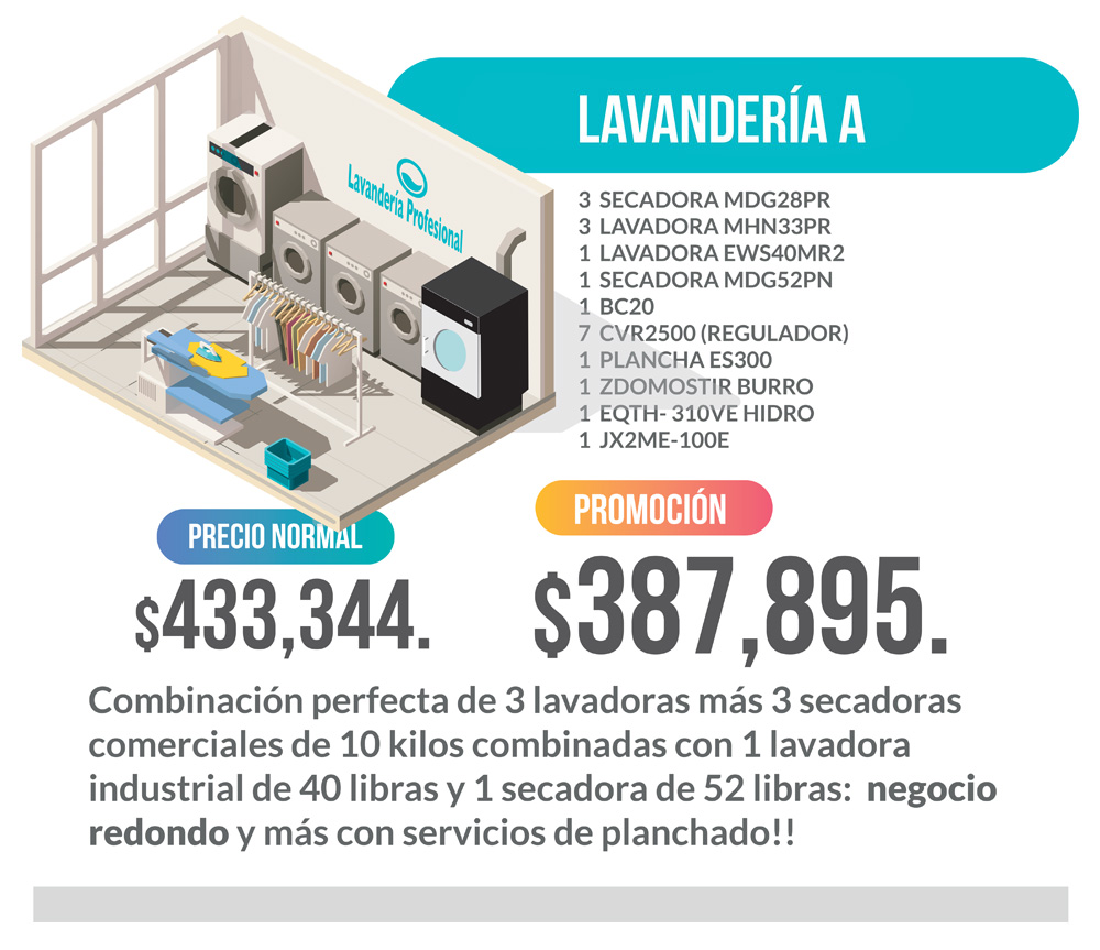 Tiempo de entrega máximo: 8 semanas. * Precio del Paquete “LAVANDERIA A” . ** Vigencia al 31 de Agosto de 2019 ó hasta agotar existencias.